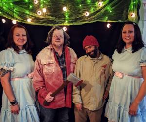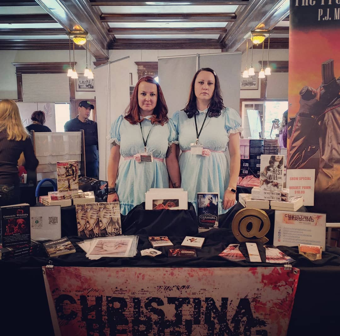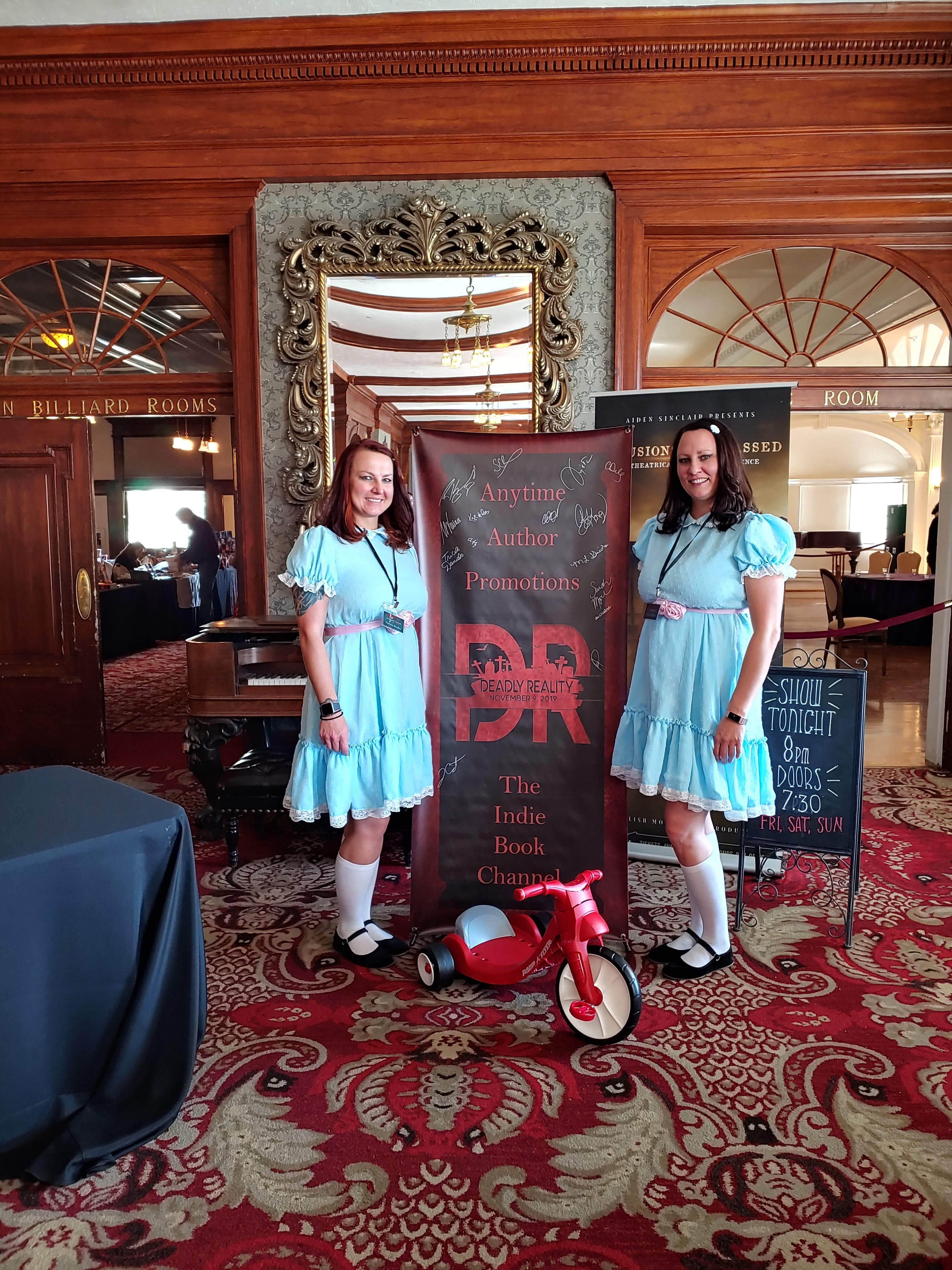 I brought Graphics Smith, the artist who drew several of my book covers and does cross promotional collaborations with me. I brought Pratique Photography, the photographer who makes all the bloody pictures with me. She also dressed up as the “twin” to my Grady sister costume. I even brought a Jack and Wendy to join in the cosplay. If ever there was a place to dress up as the cast of The Shining, this was it.