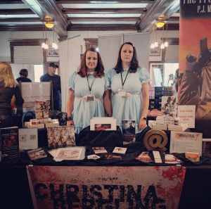 VIP attendees entered the room first, people who had paid for the event, invested to attend early and have access before anyone else. This was truly the best opportunity to sell some books and art. Yet things, unfortunately, seemed familiar, reminiscent of the last signing. A few people recognized Pratique and I as the Grady sisters from The Shining; we took some pictures. People were friendly and approached my table.