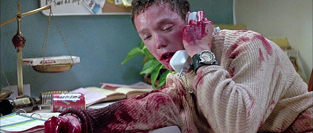 The inspiration charged Stu, and he took long strides to through the door and to Dewey’s body. Seizing the knife theatrically, he tore it from Dewey’s spine, turning his ghostly face directly toward Sidney and wiping the knife off to show her it was her turn. The way her jaw went slack and her eyes glimmered in fear told him it was a great idea.