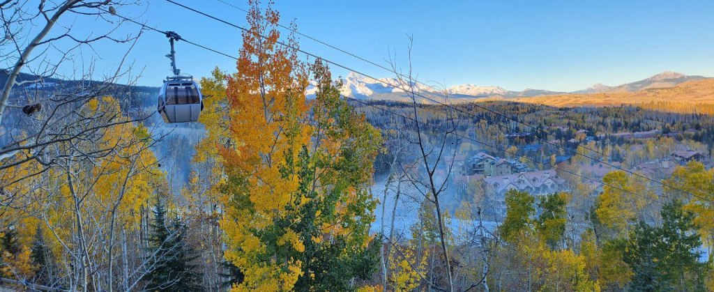 Telluride is GORGEOUS! The weather year to year is really roulette, but this year, we landed on perfect, idyllic autumn. Abundant sunshine (according to my weather app), aspen leaves so bright they looked on fire, even temperate nights.