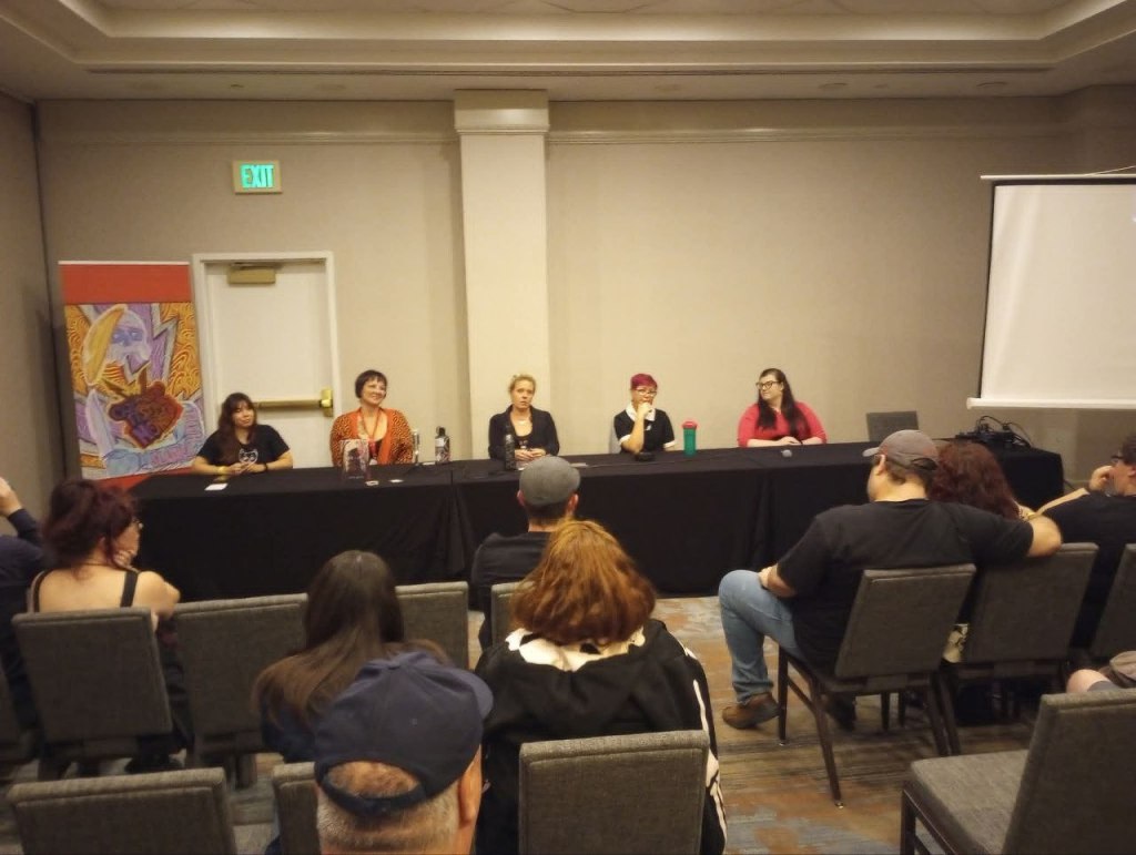 Feminism in Horror: From femme fatales to final girls, this panel covered the good, the bad, and the future of feminism in horror. We discussed how feminism means more than female representation and concentrated on creating authentic, nuanced characters of every representation. As an author constantly labeled as “pink horror” or “girl horror”, it’s nice to talk about what that really means.