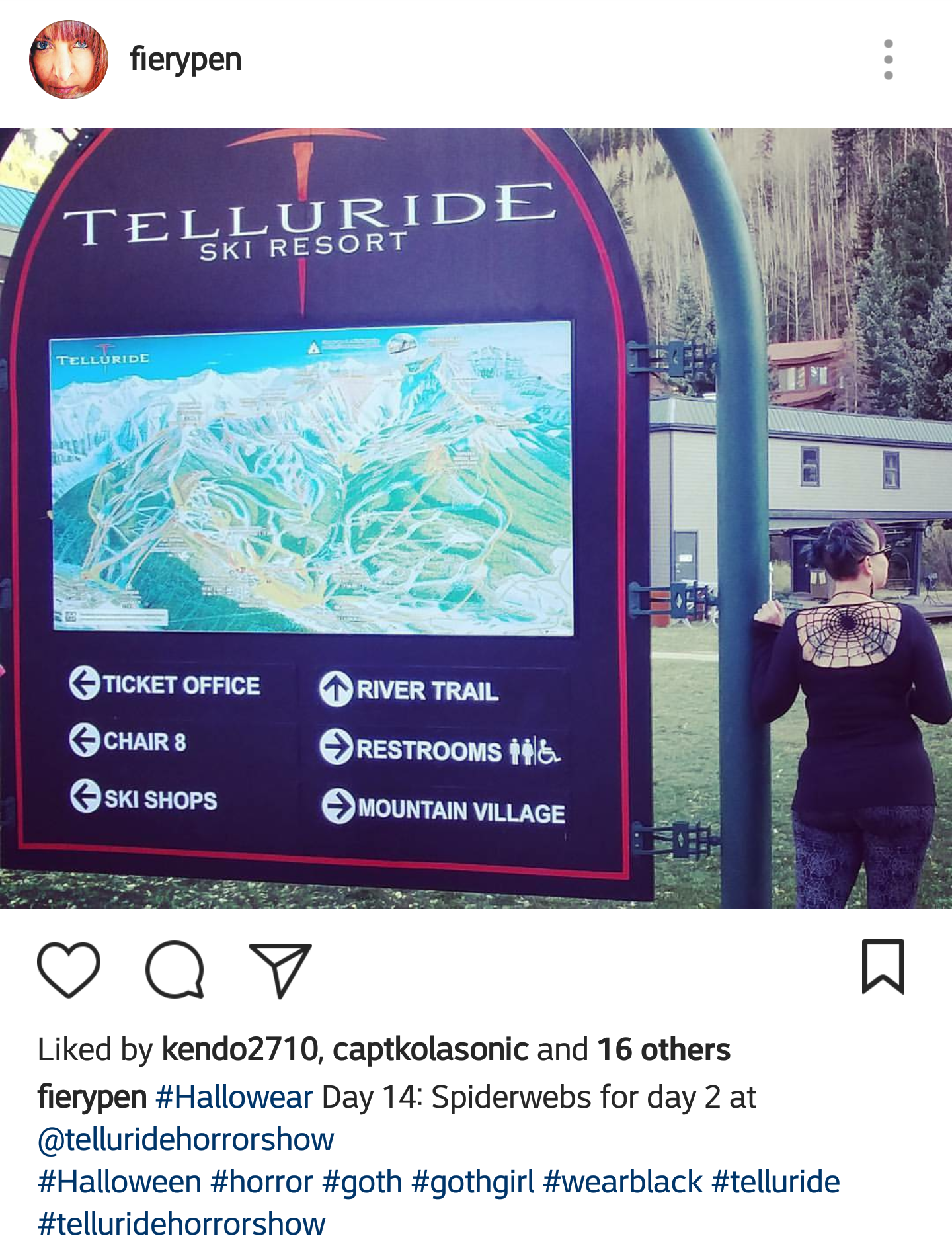 The other day, I was just doing laundry, like any other working mother might. Honestly, I may spend half my life washing and putting away laundry. Anyway, I was trying to figure out what clothes I would want to pack for Telluride Horror Show. I ended up doing an inventory of my horror/Halloween/gothic wardrobe.