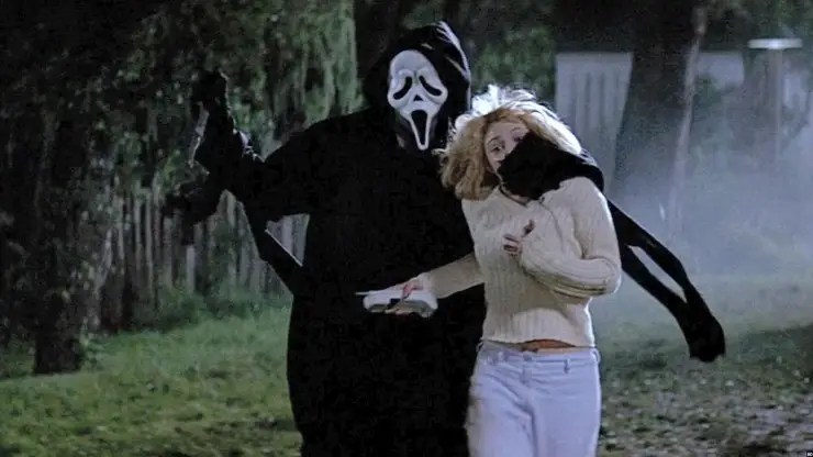 The movie seemed to calm him as if it explained everything. Dewey relaxed a degree, taking a breath and lowering his gun as he lingered by the wall. Stu crept up behind him then drew his knife and plunged it into Dewey’s spine.