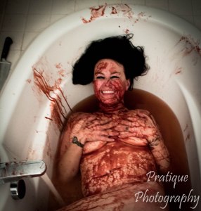Yet, as I delve deeper into being a horror author, I find the questions surfacing again. Most specifically, as I post images of me half naked and covered in blood on the wide internet.